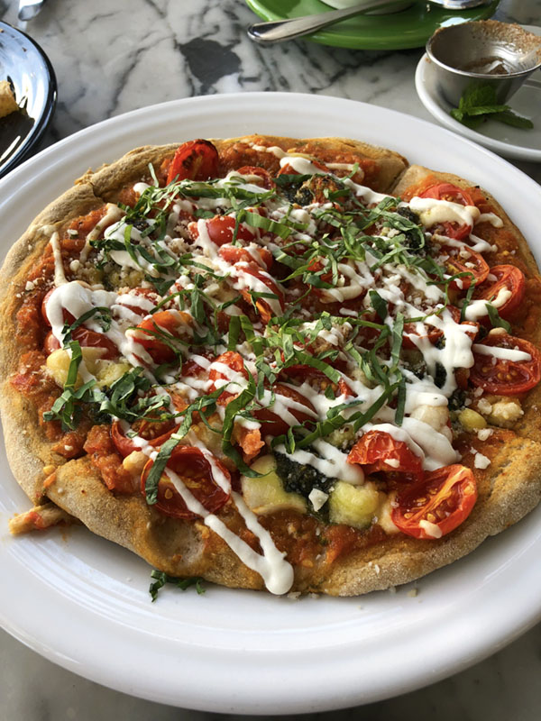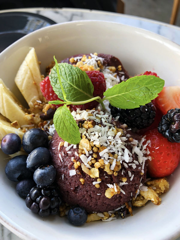 Originated in South America, açai berry (pronounced as uh-sah-ee) entered Turkish kitchens long ago and left behind many other “superfood” fads thanks to its delicious taste and the benefits it has to offer. Café Gratitude works its magic on the berry with a menu that offers many kinds of açai bowls featuring a wide variety of fruits and grains. As I am not a person with a sweet tooth, I opted for other items on the menu instead such as nachos, quinoa, noodle and pizza.
