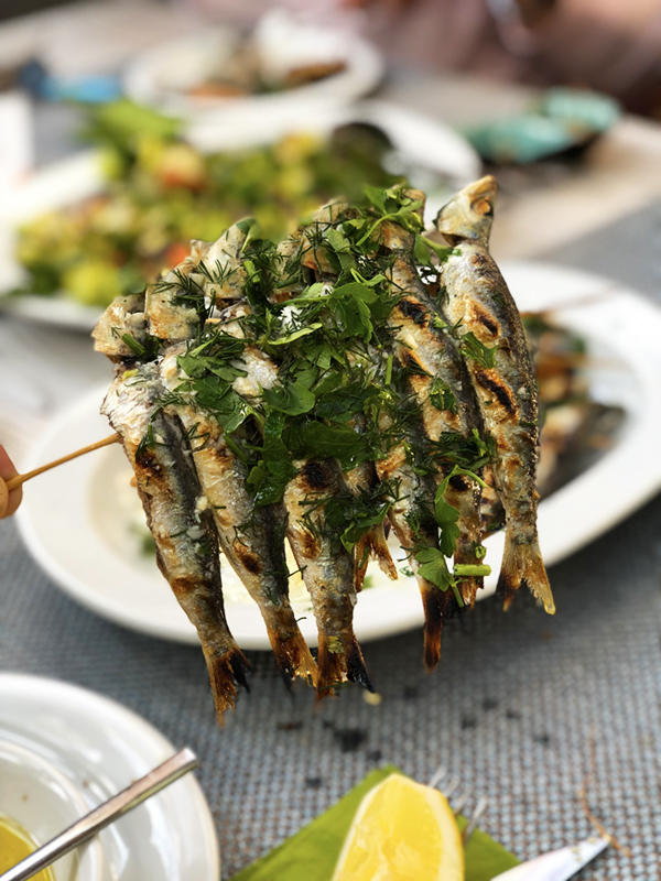 Bu sıfatı hak eden bir diğer isim; zeytinyağı, yeşillikler ve bol sarımsakla ızgaranın koynuna atılan sardalya şiş. Nar gibi kızarmış balığın suyu, üzerinde servis edildiği ekşi maya ekmeğin çıtırlığını sabote ettiğinden, ben direkt sade şekilde keyfini çıkaranlardan oldum. Balık kontenjanında harikalar yaratan barbun da, dışı çıtır, içi sulu formuyla ritüele uygun şekilde elle yenerek hafızalarda yer eden bir diğer lezzet. Finalde sahne, Horasan’ın imza tabağı olan ve denizin güzelliklerini film şeridi gibi gözlerinizin önünden geçiren böcekli tagliatelle’in. Bu erken yaz provasında kahvemize eşlik eden tatlıysa, sevgili Ahmet’in kendini geliştirme amaçlı gittiği San Sebastian seyahatlerinden miras kalan Donostia usulü cheesecake’ten başkası değil.