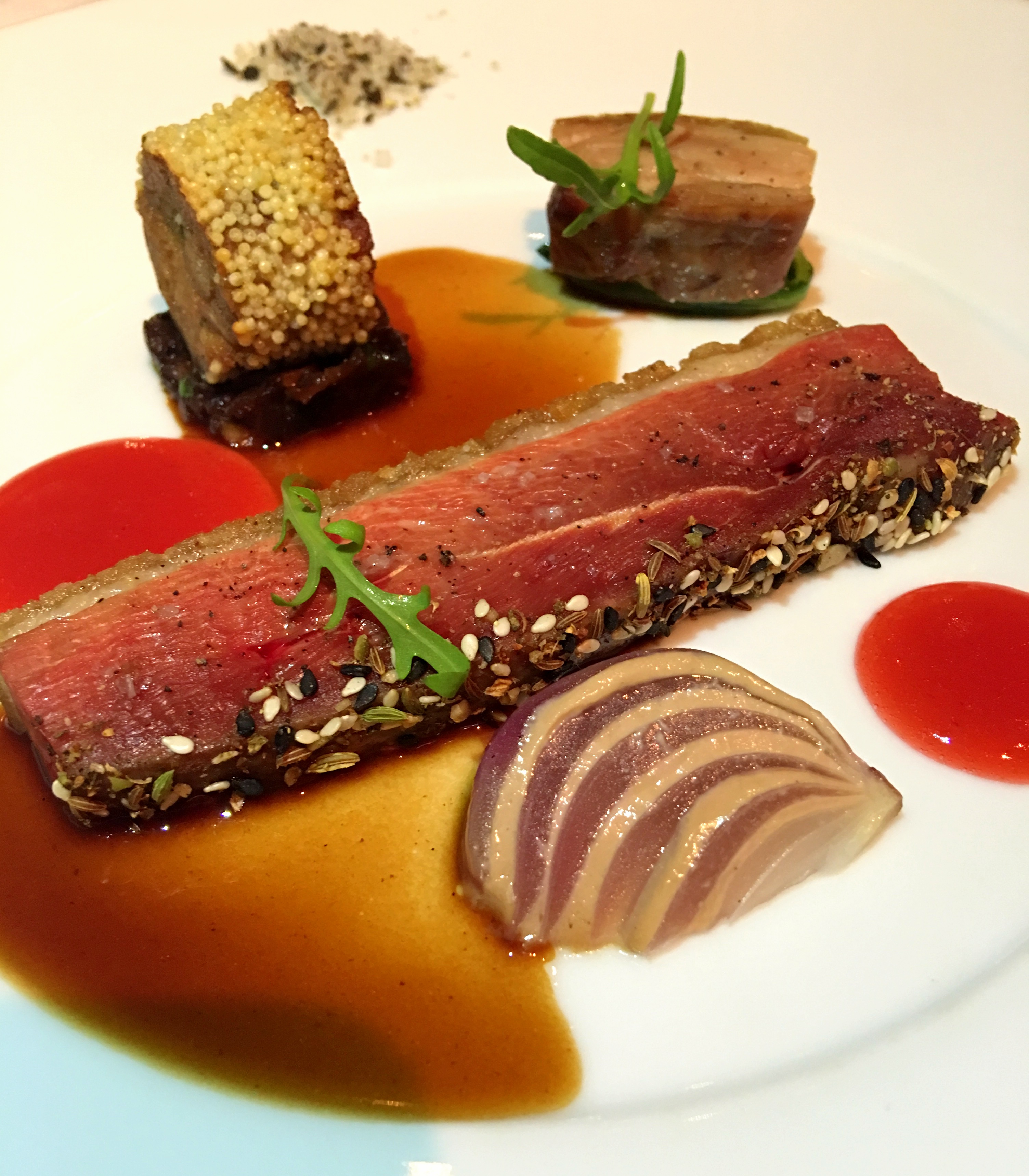 Fried-brioche-covered foie gras was as tasteful as it was good looking thanks to the colorful variety of ingredients it featured which were yuzu, ginger, apple and common mallow.