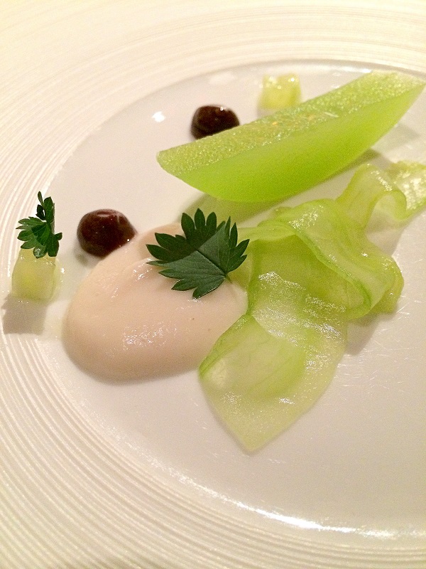 Olive mousse was another amuse bouche that we loved a lot. It came with cucumber and other refreshing vegetables as well as sweet-sour pickles.