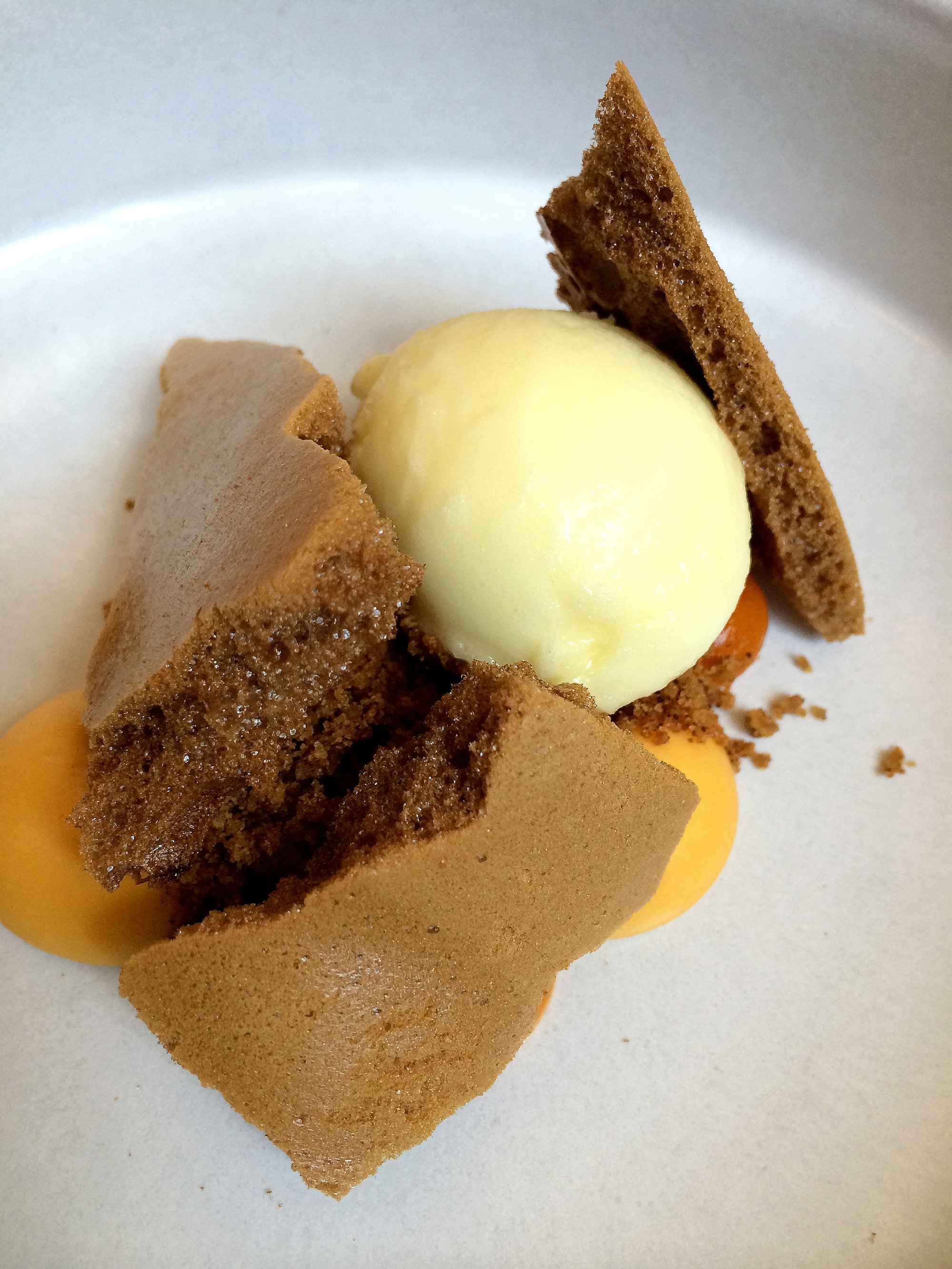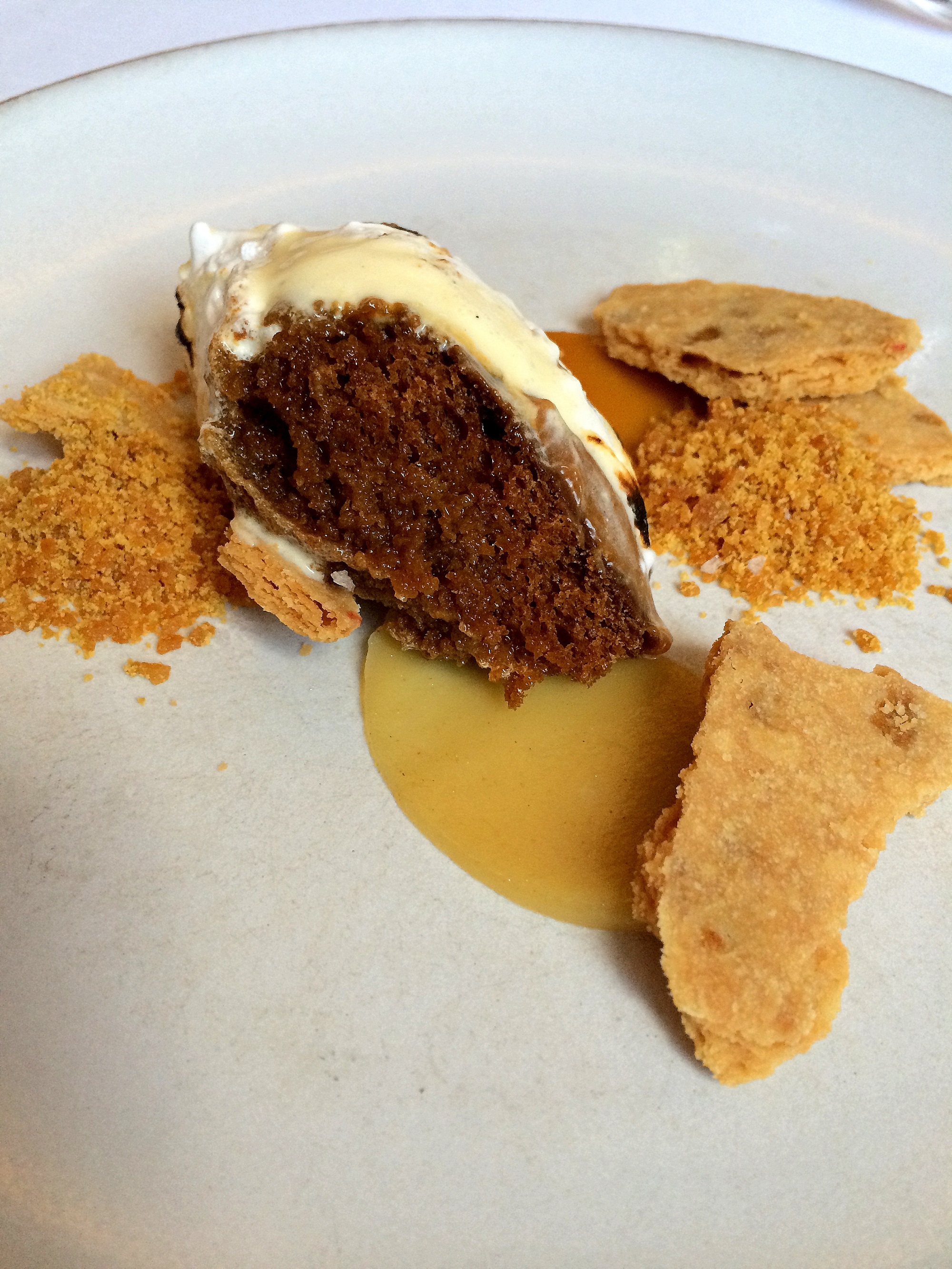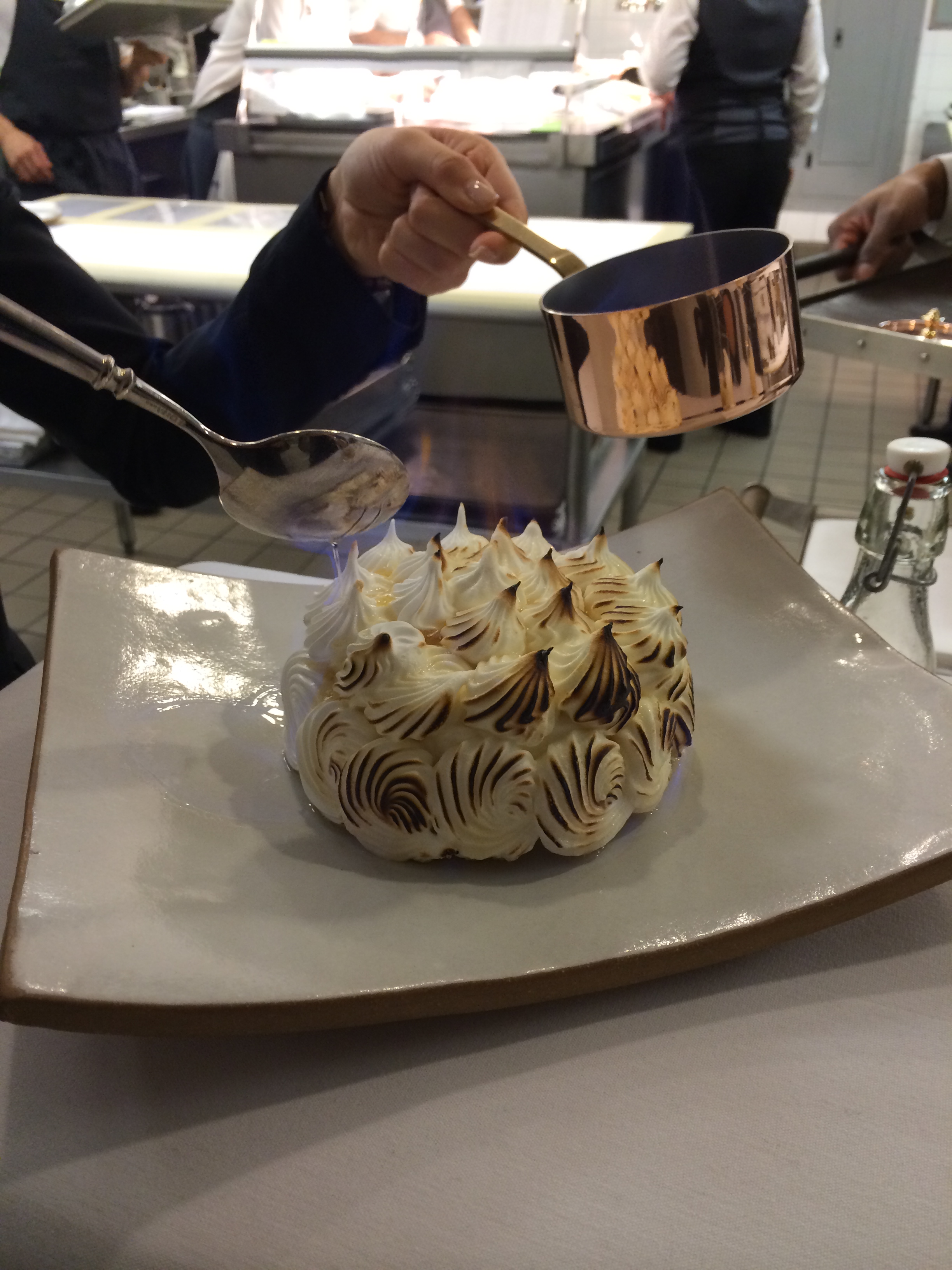 When it came to the desserts, we had sweet potato and baked Alaska. The sweet potato had a fine balance between the crispy texture and the creamy consistency of the curd flavored with the combination of espresso meringue and orange sorbet. Baked Alaska (created as a commemoration of the United States’ purchase of Alaska) which was soft on the inside and crispy on the outside and consisted of a piece of cake and ice cream coated with the white of an egg and baked at a high temperature and then flambéed to get a pinkish tint on top.