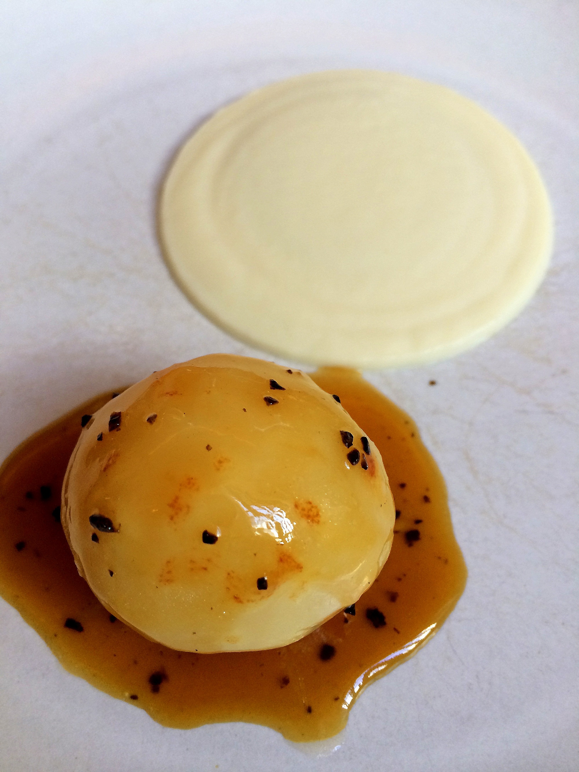 The celery dish comprised of a small celery ball carved out of the braised celery. As it was accompanied with again celery puree and topped with black truffle juice, the dish was a celebration of the earthy tastes in harmony.