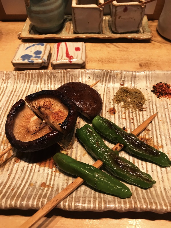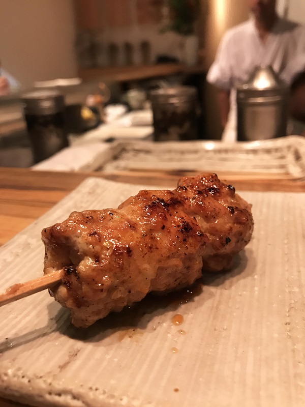 Chef Yoshiteru Ikegawa, a skilled yakitori expert, is at the helm of Torishiki. The restaurant features one stationary grill surrounded by a counter with 8 seats. The meat and vegetables on small wooden skewers are cooked over a “binchotan” fire, a tough type of white coal.