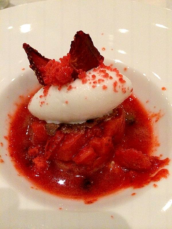 İlki çilekle servis edilen enfes bir dondurma. Keçi sütünden yapılan dondurmayı saran çeşitli formdaki çilekler, tabakta adeta dans ediyor. Özellikle dondurmanın üzerine kondurulan ve 2 gün boyunca 50°C’de bekletilerek hazırlanan çıtır çilek taneleri, damağımıza lezzetiyle mührü basıyor.